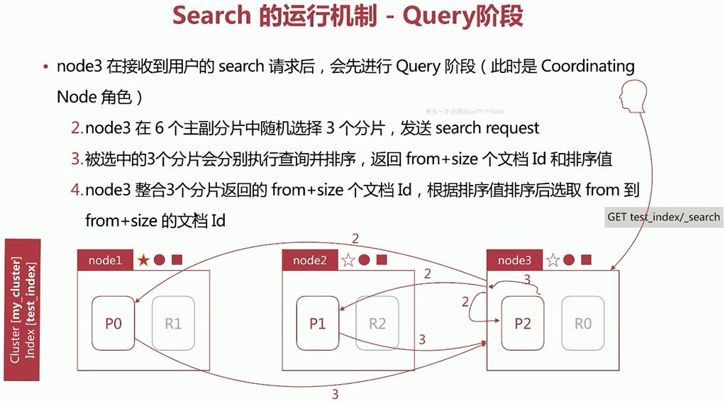 - 先从每个分片上获取前 1000 个文档, 然后由处理节点聚合所有分片的结果之后,再排序获取前 1000 个文档。