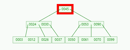 根节点【24,45,70】分裂:①70存储到新的节点【70】,②【45】变成新的根节点,同时【45】的右侧的指针指向新节点【70】;【45】的左侧的指针指向【24】。