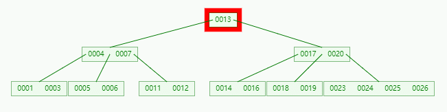 n等于m-1,插入后n>m-1引起节点分裂;以该节点中间关键字为分界,取中间关键字(偶数个数,中间两个随机选取)上移至父节点中; - 重复上面动作,直到所有节点符合