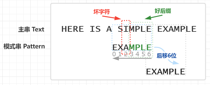 // 后移位数 = 坏字符(对应模式串)的位置 - 坏字符在模式串中最后出现位置